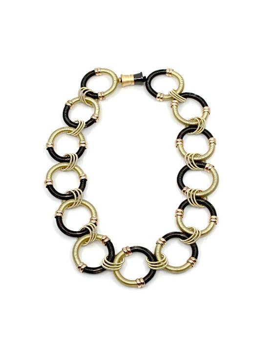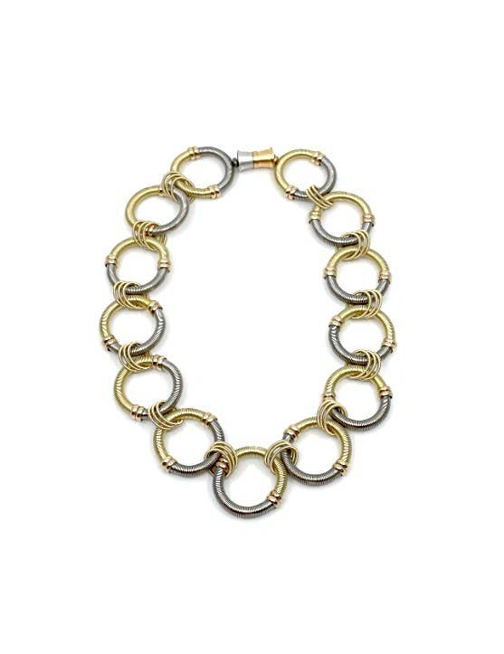 G-Br - Large Round Silver/Gold Wire Rings Bracelet