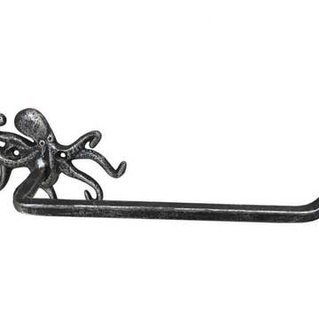 This Rustic Light Blue Cast Iron Octopus Toilet Paper Holder 11 inch is perfect for any nautical inspired bathroom. It adds charm to any nautical room, while impressing your guests with their substance and thoughtfulness. Ideal for hanging toilet paper, this durable toilet paper holder 11 inch is crafted from cast iron. Easily mountable, display this decorative holder to show those who visit your home the affinity for the sea-faring lifestyle. NOTE: Wall mounting hardware not included. Excellent octopus decoration Functional and decorative toilet paper holder Solid and heavy - handcrafted from cast iron Easily mountable (screws not included)