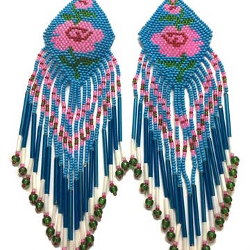 Flowers and Fringe, what's not to love! This lovely earring adds a touch of flower cheer to your look that will surely make you smile! Earrings are handmade with glass beads in bright turquoise. Also comes in white! Earring measures 3.5" in length from nickel-free ear wire to bottom fringe, and 1" wide. Each purchase empowers artisans in Guatemala!