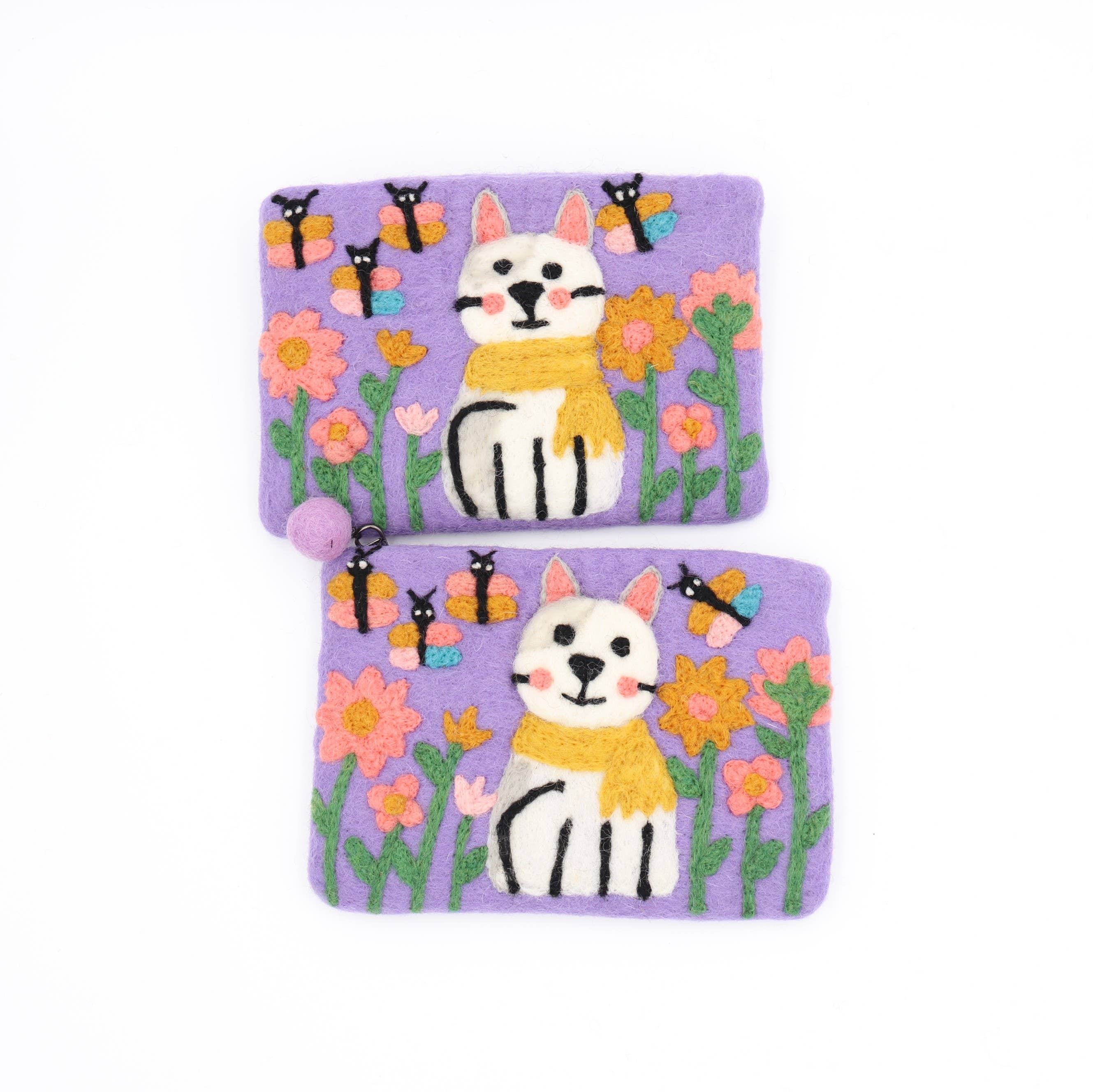 A sweet crowned unicorn with a pink mane and garden blooms—hand-felted on soft grey wool. This small zipper purse is perfect for coins, cards, lip balm, or earbuds. Each one is handmade in Nepal, so tiny variations make yours uniquely magical. * Handmade felt wallet is unique, environmentally friendly, and feels great to touch * Fleece lining is durable, soft, and secure Care instructions: * Hand wash at room temperature and air dry only Product Specifications: * Material: Handmade wool felt * Dimensions: 5.5 inches long x 5.5inches tall * Weight: 2 oz