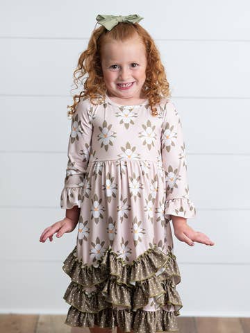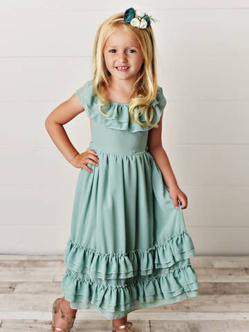 **THIS IS A PREORDER ITEM - PLEASE NOTE THAT ALL ORDERS THAT INCLUDE PREORDER ITEMS WILL SHIP ON OR AROUND THE FIRST WEEK OF APRIL. THANK YOU!!** Turn heads and make a statement with the Nellie Ruffle Maxi Dress in Champagne! This elegant maxi dress features a beautiful, cascading ruffle design that flows gracefully as you move. Perfect for weddings, formal events, or any occasion where you want to feel utterly glamorous, the Nellie Ruffle Maxi Dress is your go-to for an unforgettable look. Crafted from luxurious, silky fabric, this dress offers both comfort and style in one stunning package. Note: Nellie's are made with modesty in mind! Infant and toddler sizes (0/3 - 5T) have an open back.