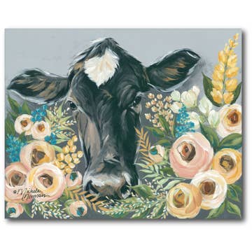 Transform your living space with the charm of our adorable cow art print painting. This piece captures sweetness as the lovable cow peeks through a simple, elegant wreath adorned with dainty flowers. Topped with a large, vibrant flower crown, the cow radiates a joyful and whimsical energy. Ideal for a nursery, this wall art creates a cozy and enchanting atmosphere. • Printed with vivid colored inks on cotton canvas mounted on wood • Solid hardwood frame in shown stain colors • Sustainable American sourced wood • Made in the USA in our Utah studio • MINI 6" tall x 6" wide x 1.25" deep w/ 1/4" thick frame • SMALL 11" tall x 11" wide x 1.25" deep w/ 1/4" thick frame • MEDIUM 15" tall x 15" tall x 1.5" deep w/ 3/4" thick frame • LARGE 22" tall x 22" tall x 1.5" deep w/ 3/4" thick frame • Signs may have +/-1" variations • All signs can stand on a shelf or table (Medium & Large can also hang on a wall) • Farmhouse style frames have small rustic imperfections that make them unique
