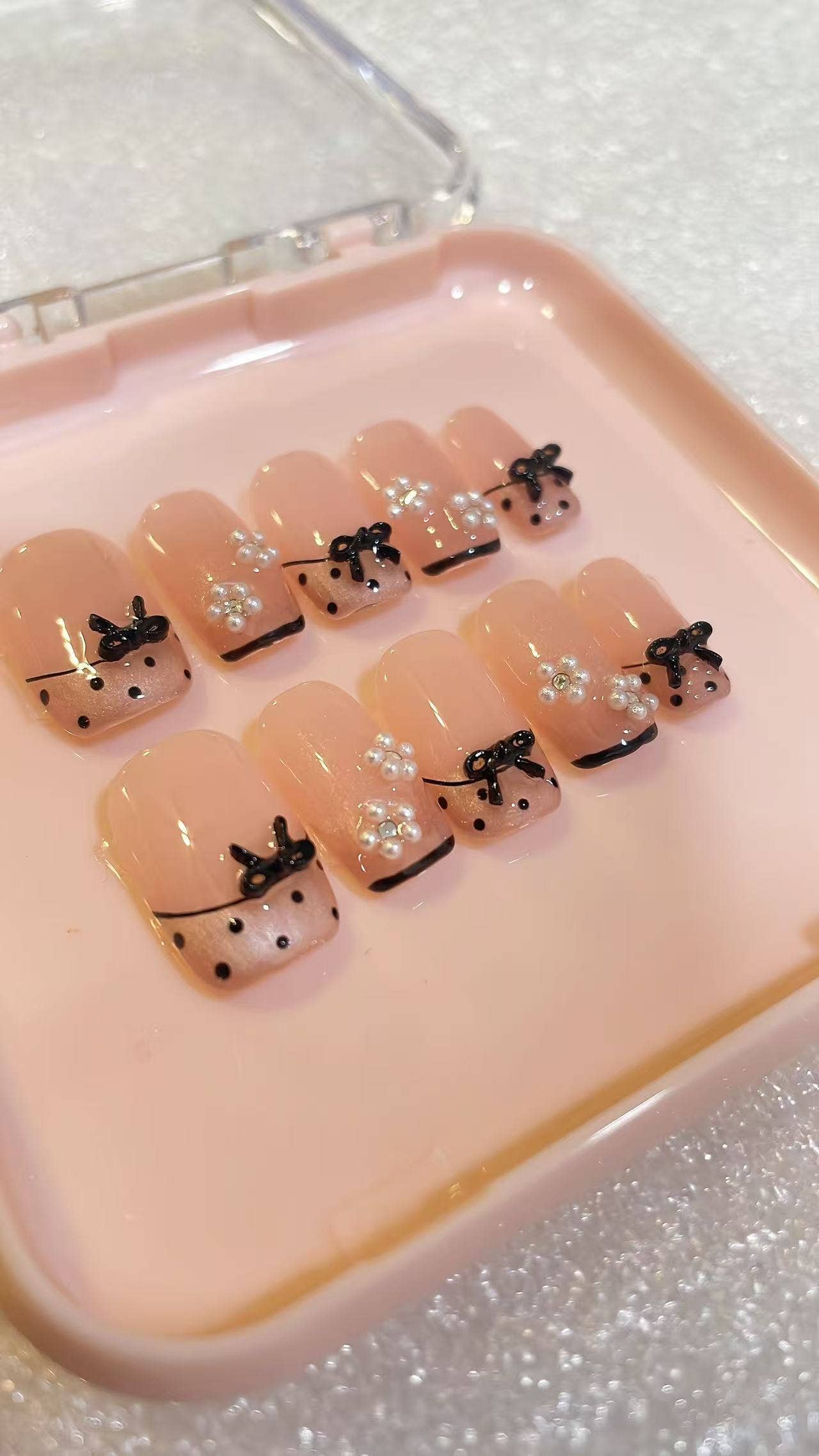Wholesale Hand Painted Press on Nails Black Lace Stilettos