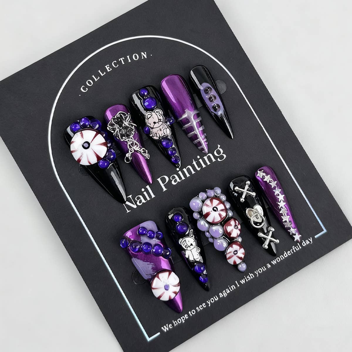 OVER THE TOP NAILS - Wholesale Press-On/Fake Nails - Hand Painted Press on Nails  Black Lace Stilettos