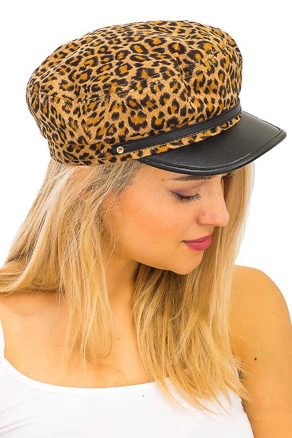 Wholesale Exotic Leopard Brushed Cabby Newsboy Cap