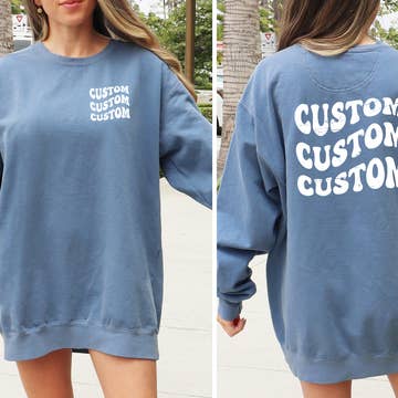 Now with Embossed Print, Customized Puff Print "Your Small Business, Shop, Boutique or City" Custom Cropped Sweatshirts The print is embossed and raised from the garment, for an ultra high quality feel! Soft and comfortable, these custom city cropped sweatshirts are true to size and more on the longer side than short crop length. We recommend sticking with your normal shirt size for these. Sizes Available: S, M, L, XL, XXL Sweatshirt Colors: White, Black, Natural, Navy Blue, Forest Green, Red, Soft Pink, Baby Blue, Green, Gray, Hot Pink, Royal Blue Puff Print Colors: White, Black, Red, Natural, Pink, Dark Blue, Dark Green HOW TO ORDER: In the Personalization/Notes Section at checkout state the text exactly as you would like it print + the puff print color. Example: San Diego, Black Puff Print We can not do full color logos with puff print, sorry. Cotton & Polyester blend Soft & Comfy * Please note that the embossed part of the print may be textured and not 100% smooth.
