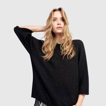 The Mylah has somehow executed the perfect cross between slouchy and shapely! Feel free to give her your own personality; pull up the cozy sleeves or ruche the bottom gently for a blousing effect. The sophisticated batwing sleeve is everything! Jeans or leggings complete the look and let you take her anywhere. Made in Italy. • Boat Neck • Super soft and cozy • Batwing Sleeves • To the hip • One size fits most (REALLY!) *2 – 12/14 • Machine wash cold, delicate, with like colors. Lingerie bag recommended. Lay flat to dry.