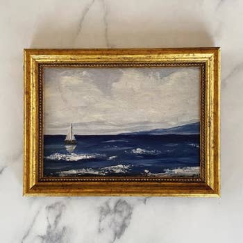 3x3 "On the Coast Mini" Printed on linen paper framed in gold frame.
