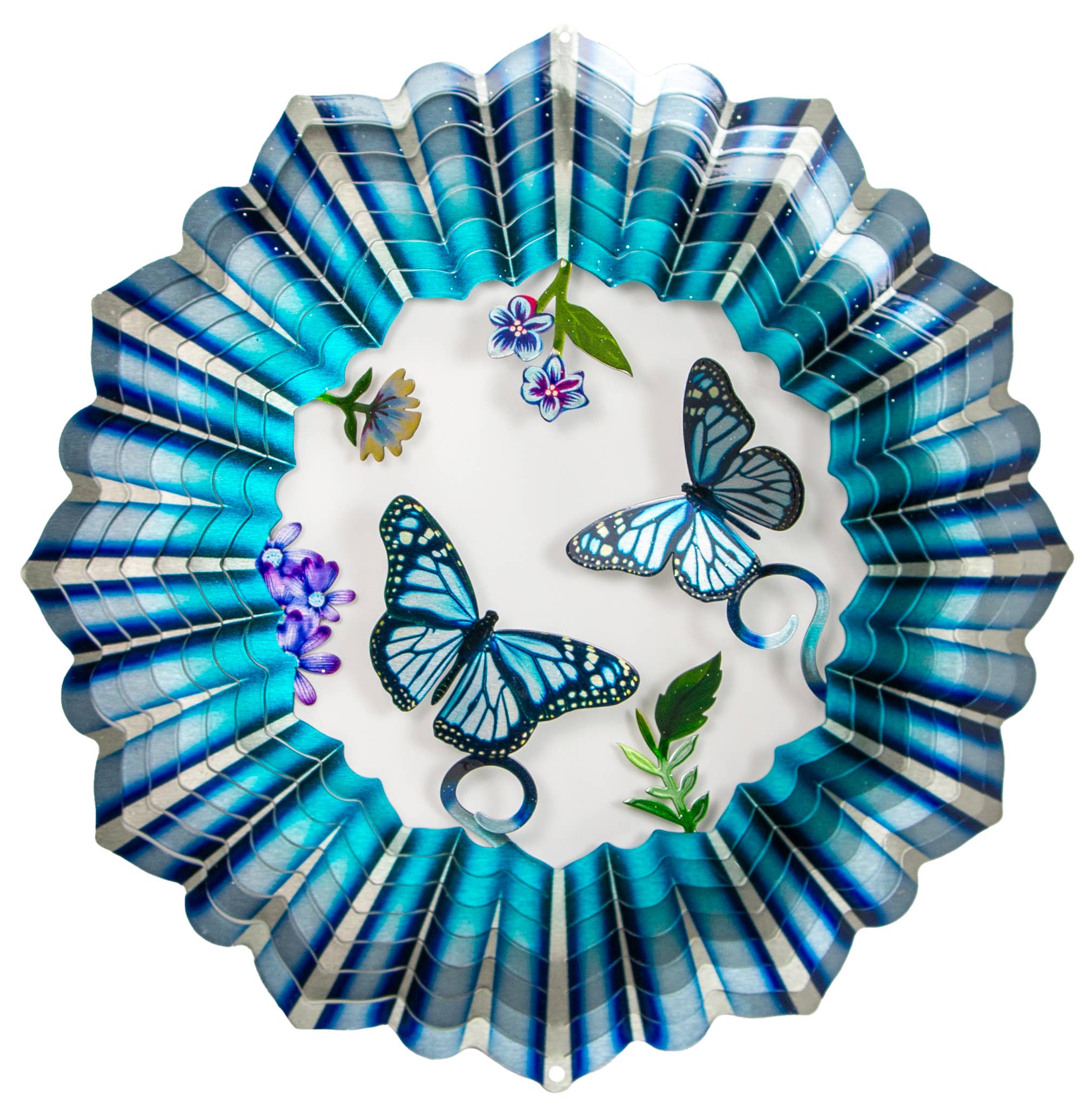 Our Wind Spinners catch the eye and capture the imagination. These beautiful yard décor feature a bold color scheme, with a beautiful etched 3D graphic in the center. It's made of durable stainless steel to hold up to the weather. Hang the Wind Spinner in your garden or on your porch for brilliant color in motion.