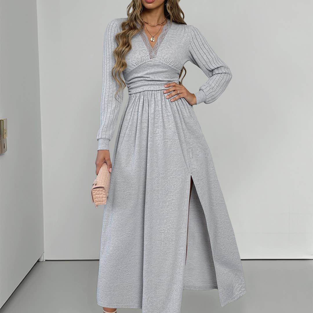 Long sleeve cowl drape front detailed dress