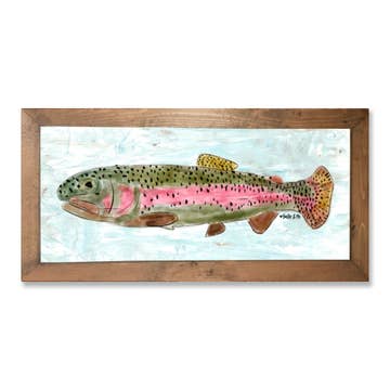 Colorful, Rainbow Blue Trout Fish Painting with LOTS of texture. Available in a variety gallery canvas sizes. Each Rainbow Blue Trout Fish Painting is original and while similar, each one is one of a kind. Painted by hand, to-order, which will result in slight variation. The fish are painted with professional grade acrylic paints and lots of LOVE! Signed + dated by artist Courtney Burden ( @myfriendcourt) and high-gloss varnished to finish! (*custom sizes available- reach out via messages)