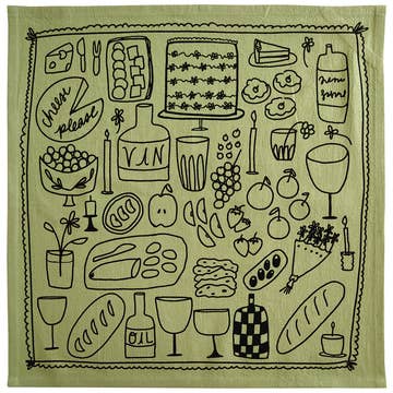 Picnic on Sage Green Tea Towel - 100% Cotton