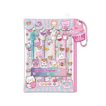 1 Reusable Bag 5 Scented Gel Pens 4 Sticky Note Pads 1 Sheet of Stickers Age: 5-12 Years Gender: F