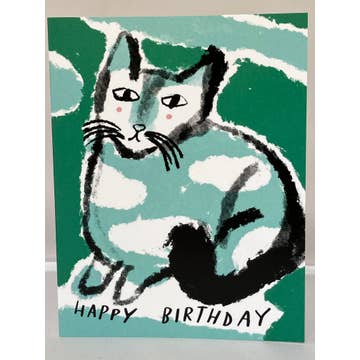 Colleen Harrington Studio - Wholesale Birthday Card - A2 Greeting Card - Happy Birthday Green Cat