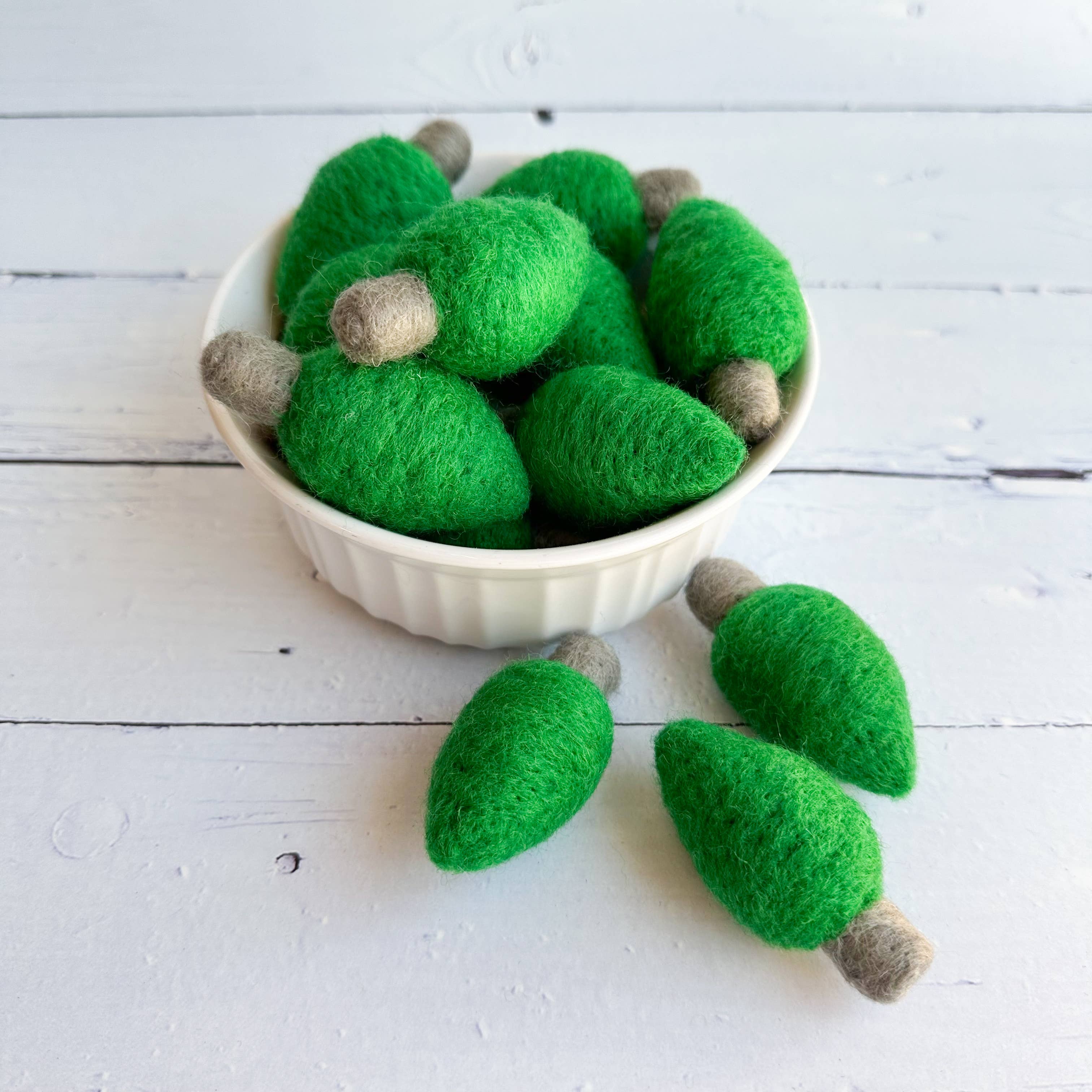 Each gingerbread house is hand crafted by fair trade artisans using both the wet felted and needle felted methods. This adorable piece is perfect for sensory play, learning, decor, DIY garland or add a string for a beautiful Christmas tree ornament! Due to the handmade nature of these materials each product may differ slightly from pictures. Material: 100% Wool Felt Included: 1 individual gingerbread house Size: 7cm x 6cm