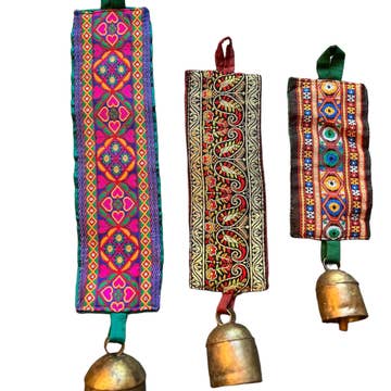 Brighten your days with this handmade, wind chime bell ornament, a mini version of our classic bells, with a bright red braided loop. Use as a holiday ornament, or to decorate door knobs, patios, windows, walls and more. Dimensions: 2.5" bell; Hanging cord appro,. 7" L These bells are also known as Noah or cow bells. They are hand tuned to perfection with a calming meditative sound. WARNING: This product can expose you to chemicals including lead, which is known to the State of California to cause cancer.