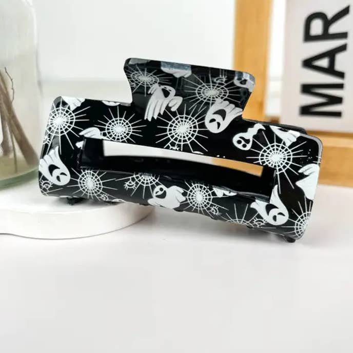 Material - Acrylic Handling Process- Handmade Size: 8.2cm Weight: 30g Description: Add a touch of spooky elegance to your hairstyle with our Halloween Spider and Spider Web Half Circle Hair Clip. This intricate accessory features a captivating spider and web design, perfect for embracing the Halloween spirit. Design: The Halloween Spider and Spider Web Half Circle Hair Clip showcases a detailed spider perched on an intricately crafted web, forming a half-circle shape. The design adds a spooky yet stylish element to your hairstyle, making it ideal for Halloween. Material: Made from high-quality materials, this hair clip is lightweight and durable. The smooth, polished finish highlights the intricate design and ensures comfortable wear throughout the day and night. Size: Designed to hold small to medium sections of hair, this clip is versatile for various hair types and styles. Its practical size makes it suitable for creating both casual and elaborate hairstyles.