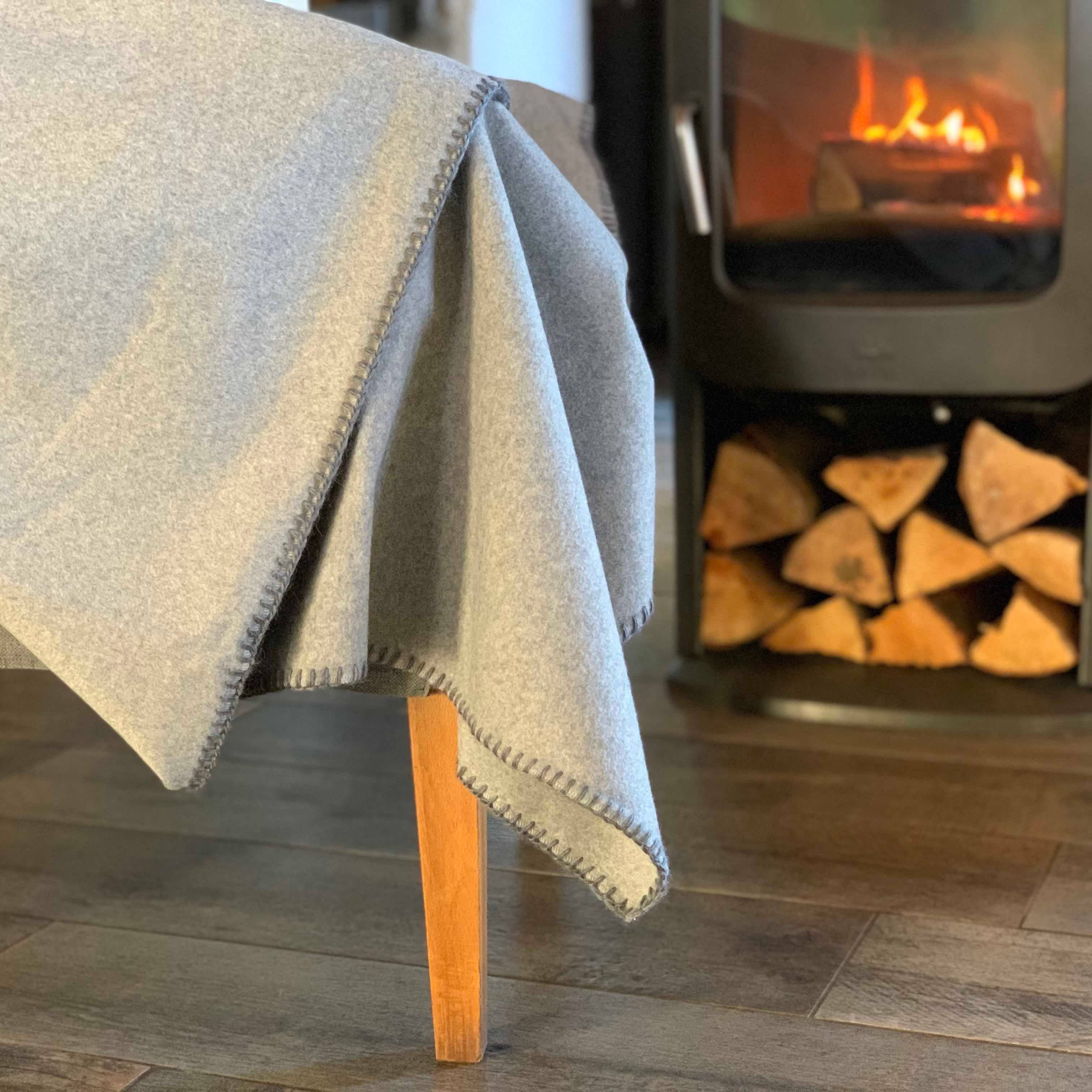 Grey 100% cashmere blanket, Made in Italy, 150x150 cm with burnt saddle stitch hem. A very warm cashmere cloth ideal for your sofa, a classy choice.