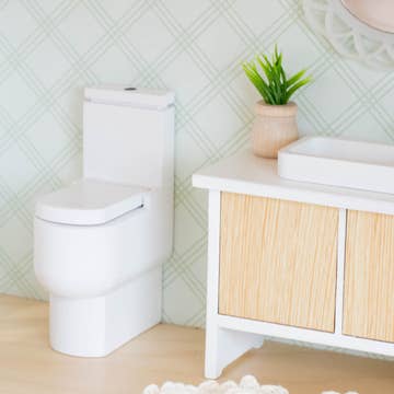 Stock those dollhouse bathroom carts, cabinets, and shelving with this collection of preciously-detailed, vintage-inspired Miniature Bathroom Tissue and Shampoo Bottle! Wee light blue, pink, and green separately paper-wrapped cylindrical wood pieces are full of authentic detail, embellished with a bow graphic with included number of sheets, archetypal icons. A classic-look antiquated saffron yellow bottle is labeled, "Baby Shampoo," with a sea foam green cap. Set includes: 1 Shampoo Bottle: 1/64" L x 1/4" W x 9/16" H 3 Toilet Tissue Roll: 5/16" H x 1/4" Dia. 1:12 scale - 1" scale