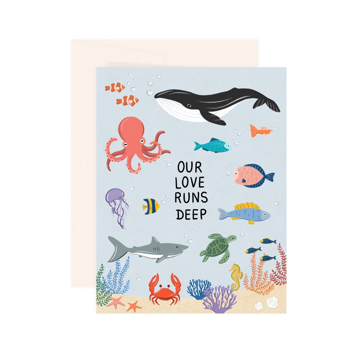 Add a touch of charm to your shop with our "Kissing Fish" card, showcasing an elegant watercolor illustration of two pink fish sharing a kiss, with playful blue bubble hearts floating above. This versatile card is perfect for Valentine’s Day, anniversaries, weddings, or everyday romantic sentiments. Designed for retailers looking to offer unique and artful cards, it’s printed on high-quality cardstock with a smooth finish. Each card comes with a matching white envelope, ready for gifting. Stock up on this best-seller and bring a smile to your customers with its whimsical, love-themed design! * Material: High-quality cardstock with a smooth matte finish * Size: 4.25" x 5.5". * Blank interior for personalized messages *Matching white envelopes for each card * Single cards are individually packaged in a clear sleeve * Boxed sets of 6 are packaged in a Kraft box with envelopes - ready to be gifted. Original artwork created by Liz Pope.