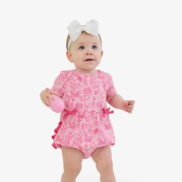 100% Cotton Ruffle Baby Knit Romper Unisex Can be personalized with embroidered with extra $3. Made in SwaddleAn's factory by SwaddleAn artist, zero outsourcing