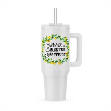 Meet your new favorite way to stay hydrated: the Be Still Teal Meadow Stainless Steel Tumbler with Reusable Straw. This tumbler combines a large capacity with an encouraging statement of faith and chic style. Neutral-colored meadow flowers and teal leaves decal, White powder-coated exterior, Gold-foiled text decal, Be still and know that I am God, Psalm 46:10, Be Still Teal Meadow Collection, Stainless steel travel tumbler, Reusable stainless steel straw, Teal silicone tip for straw, Clear plastic lid with sip opening, straw opening, and rotating closure, Double-wall insulated stainless steel interior, Hot or cold beverages, Maintains temperature for up to 24 hours, Not dishwasher, microwave, or freezer-safe, Hand-wash recommended, Packaged in a tuck-top Kraft cardboard box, Capacity: 40 fl. oz. (1183ml), Mug size: 10.8” x 5.9” x 4” (274 x 150 x 102mm), Packaging dimensions: 11.3” x 6” x 4.1” (287 x 152 x 104mm)
