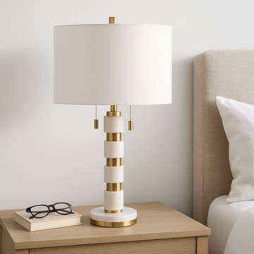 Add style and function to any space with the Cylinder Rattan Table Lamp by LumiSource. The contemporary styling of this lamp features a natural rattan body with beautifully contrasting metal accents throughout. Illuminate your home today with the Cylinder Table Lamp today!