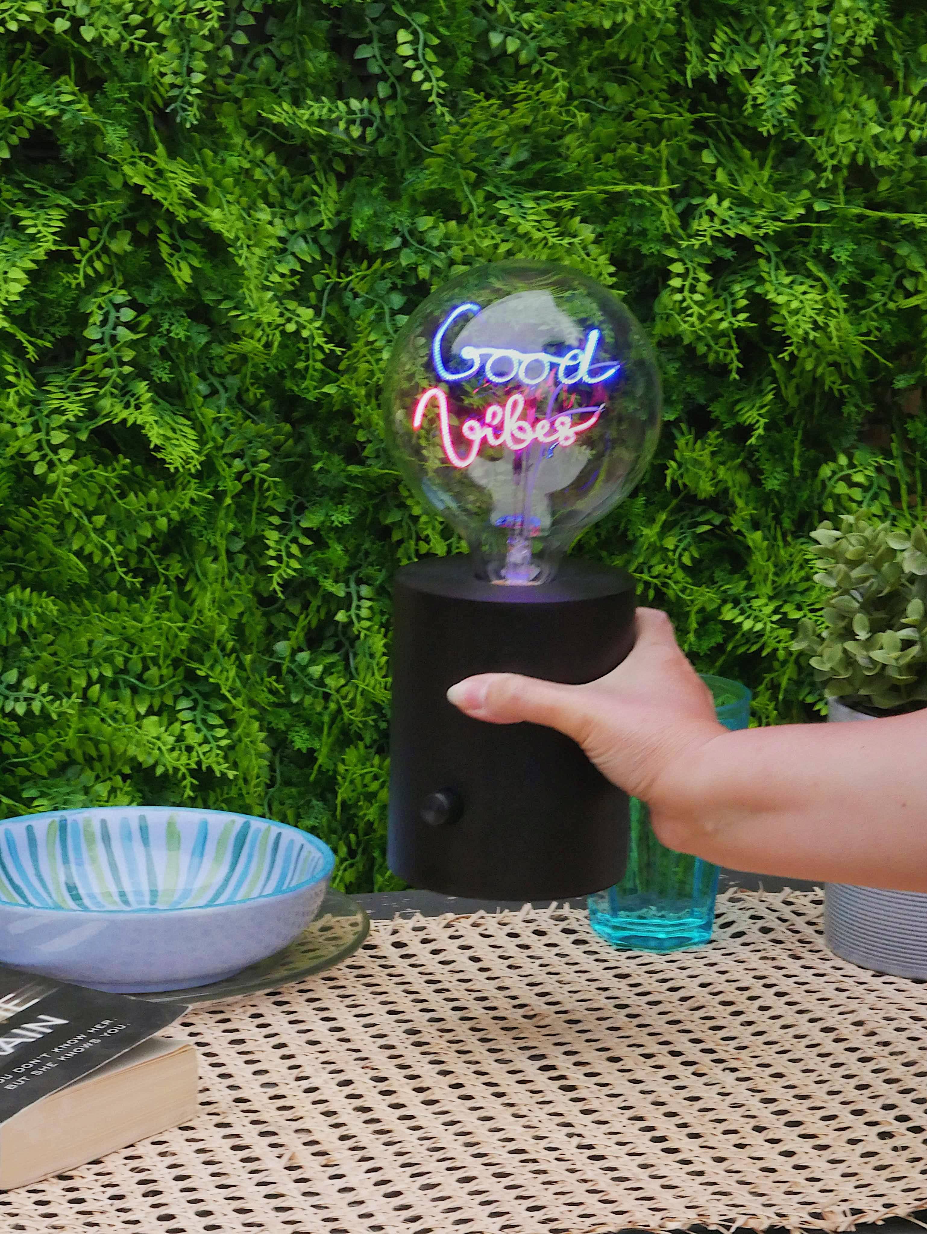 Unique LED filament Text Light Bulb. A light Bulb like no other... The Bright Ideas Collection, LED Filament Text Bulbs that we designed to bring a unique, ultra-cool style and beautiful light to any home or occasion. The Bulbs are a standard E27 Edison screw fitting, they are a 4 Watt and 230V. We use LED filaments for a much longer life span of, 25,000 hours of light. The bulbs are FULLY dimmable and have IP 20 rating, and a Lumen rating of 80-90lm. Paided with our stunning Marble Stone or Grey concrete base desk lamp(sold separately , bases on another listing) .With Dimmable switch and Fabric mains cabel to add a touch of class. So why not bring some light to your life with the Bright Ideas Collection Features Marble stone base desk lamp Dimmiable light Unique LED Text filament shape Fabric mains cable Easy to assemble - all tools inlcuded E27 edison screw fitting 25,000 hours of light ​