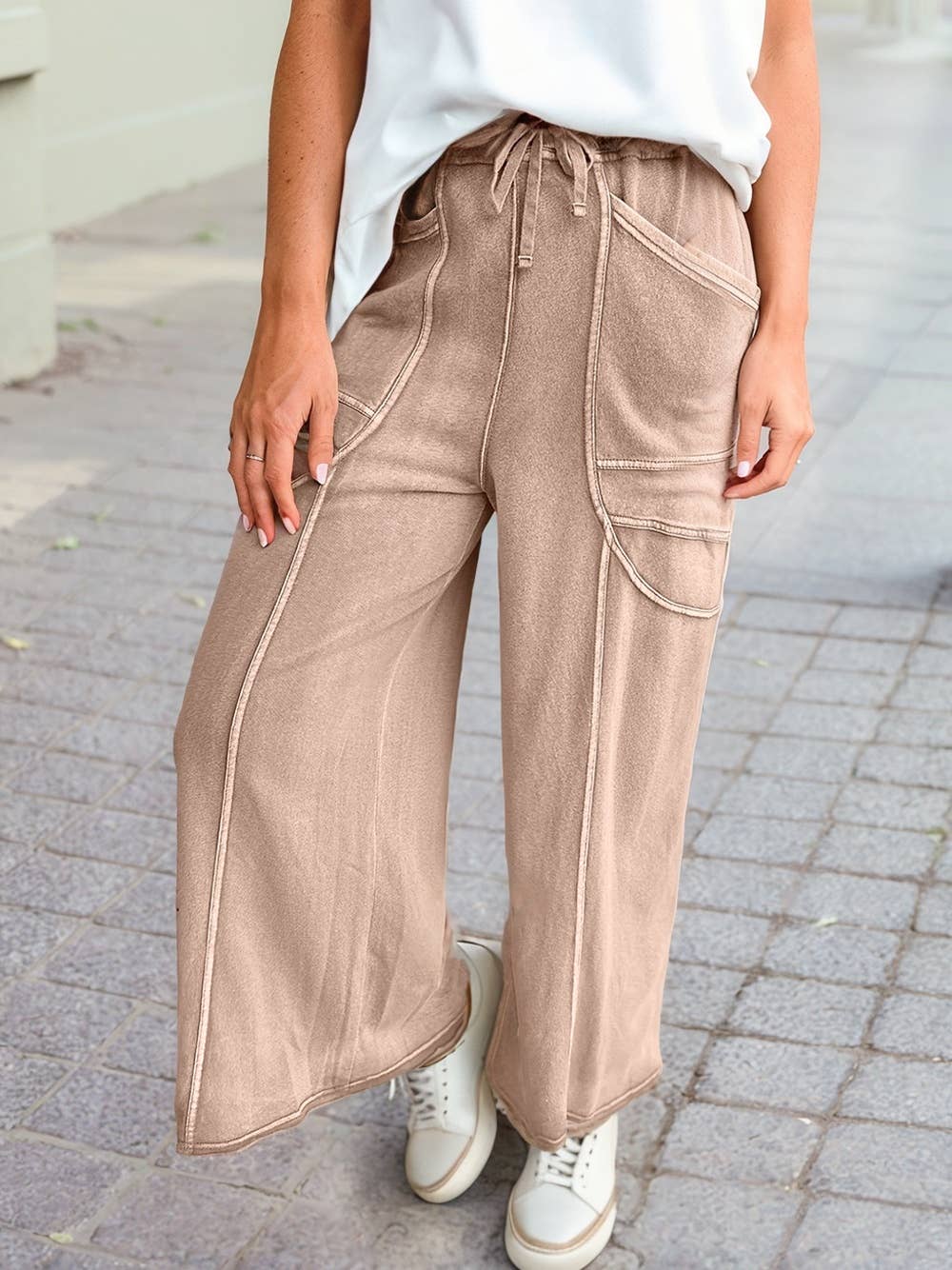 Solid Color Waist Tie Tourse Ladies Pants SKP8020