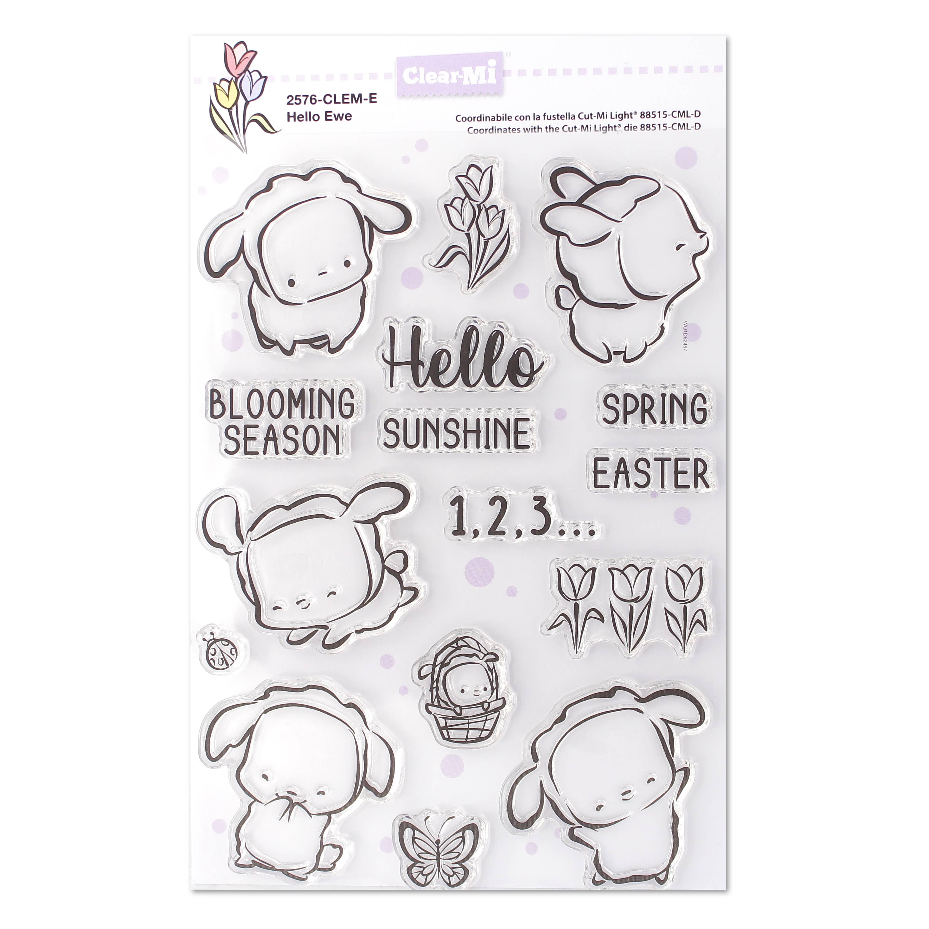 Set of clear polymer stamps. It is possible to coordinate them with the 88431-CML-E thin die set. The clear stamps adhere to the plexiglass supports without the need for adhesive. Once on the support, they are used like normal wooden stamps, however, allowing you to see exactly where you are stamping.