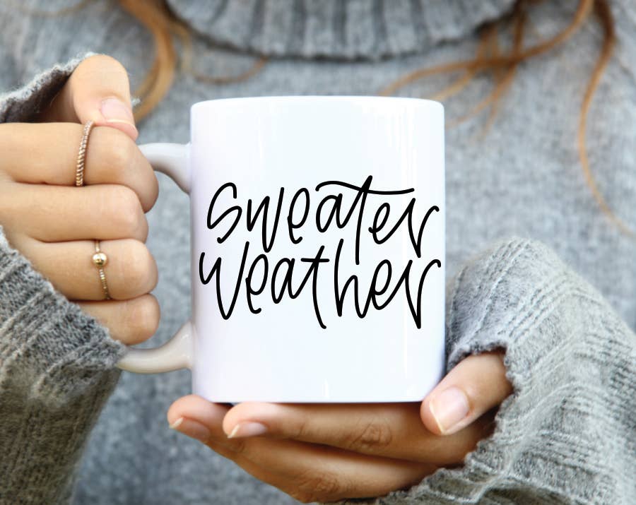 Sweater Weather Coffee Mugs, Neutral Fall Drinkware Cute Cup
