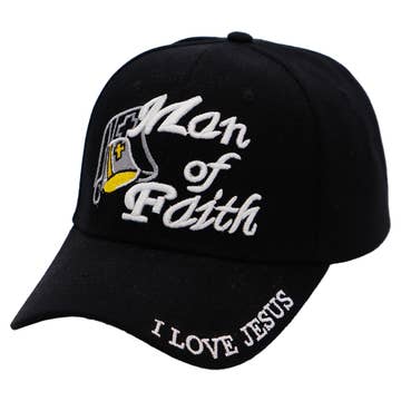 Man of Faith Biblical Logo I Love Jesus Embroidered Six Panel Curved Bill Twill Velcro Back Baseball Cap -100% Acrylic -Show your faithful religious spirituality with this cap representing bible verse and for other church related outings.