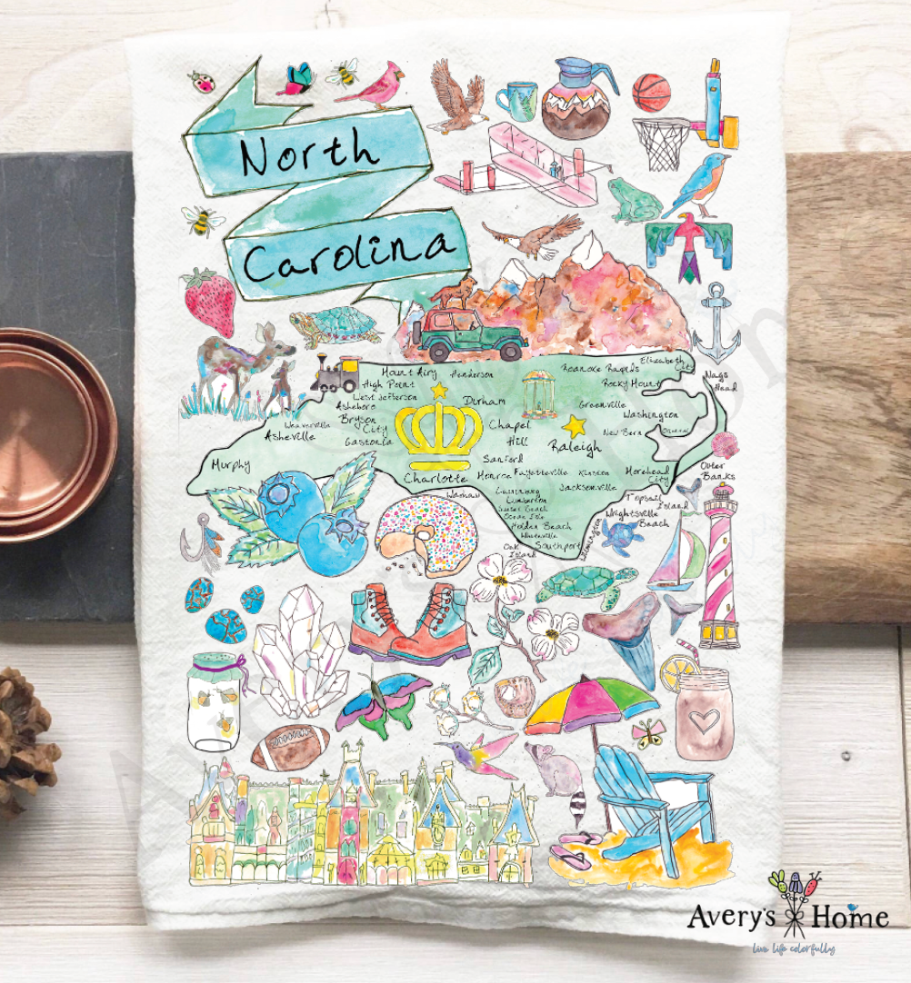 This is a store commissioned product, and is only available to the store that commissioned the design. To request a custom location design please order product sku TCL00 or feel free to message me directly. Avery’s Home flour sack tea towels are sold in all 50 states, Canada, Europe & Australia. These dish towels are a top seller for all my retailers, and make the perfect gifts and souvenirs for all occasions. These decorative, whimsical, handmade/painted artisan Florida Custom Location designs are sure to brighten every living space! * Size: 27"x27" * 100% Cotton, globally sourced * Color: White * Hemmed on all four sides * Lint free * Printed in USA They arrive folded and tagged ready for display on a counter, ladder, or in a cubby! They are eco-friendly & stores have found customers love the touch & feel the quality of the towels. SKU: FSTT_TCL38