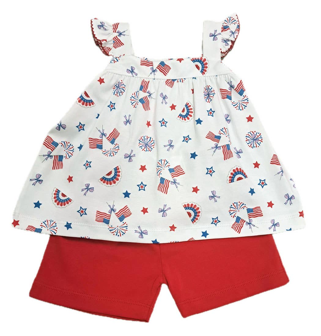 No reviews for Fringed Tank w/ Sunflower Graphic & USA Flag Denim Shorts yet.