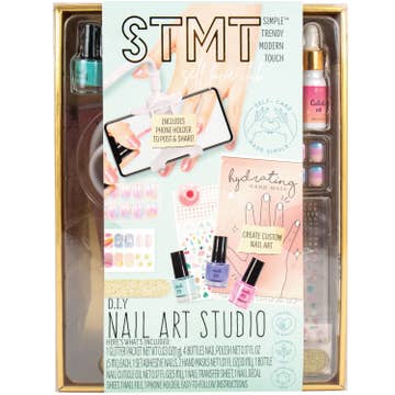 Includes 3 nail polishes .27 oz. each. 1 nail sticker sheet. Packaged in a peggable bister card 5 1/2" w x 5 1/4" h.