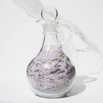 AROMATHERAPY NOTES: You belong among the wildflowers! Enjoy notes of crisp fresh air and let your free spirit frolic in a field of wildflowers. Symphony of delicate wild florals, sun-kissed meadows, sweet nectar and grassy undertones. 2 oz. / 28 g. Directions: Indulge yourself in a glorious spa treatment in the privacy of your home. Simply add to a warm bath and soak in self-care. Intended for a one-time treatment, but may be split into two. Caution: For topical use only and is not for human consumption. If skin irritation occurs, discontinue. Ingredients: european sea salt, dendritic salt, rosa canina (pink rose petals), jasminum officinale (jasmine), centaurea cyanus (cornflower), phthalate-free fragrance