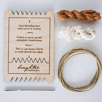 This versatile kit is the epitome of DIY. One can start with a bracelet and continue by weaving keychains, bookmarks, and other small woven goods. It is the kit that keeps giving. Just like our original Woven Necklace Kit, this is a frame loom-based kit that comes with everything one needs from the yarn to the needles. An instructional sheet and video link is also included so your customers have a guide to get them through. This kit even comes with hardware for turning your bracelet into a finished wearable item. Kit Includes: ~ One frame loom ~ A comb and shed opener (for easier weaving) ~ Two colors of thread ~ Two metal tapestry needles ~ Instructions ~ Hardware for one bracelet