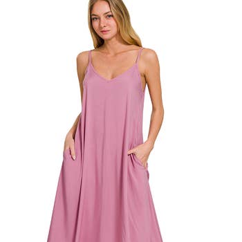 * ONLY SOLID COLOR CHANGES ** 95% RAYON 5% SPANDEX SLEEVELESS ROUND NECK SOLID COLOR BLOCK DRESS WITH SIDE POCKET AND RUFFLED DETAIL MODEL SIZE: HEIGHT 5'9", BUST 32", WAIST 23.5", HIPS 34" WEARING SIZE: SMALL *The garment color may differ slightly upon arrival due to being taken with professional lighting also depending on what device you maybe using to shop*