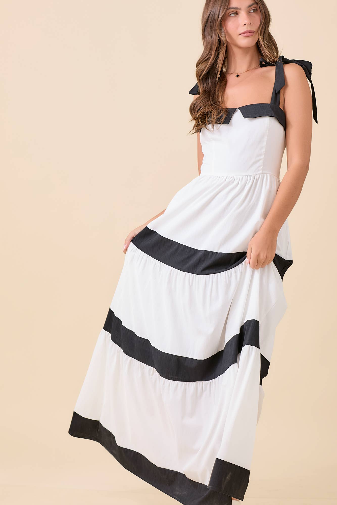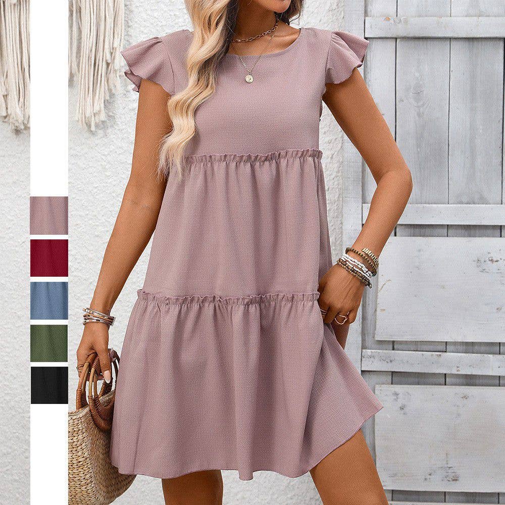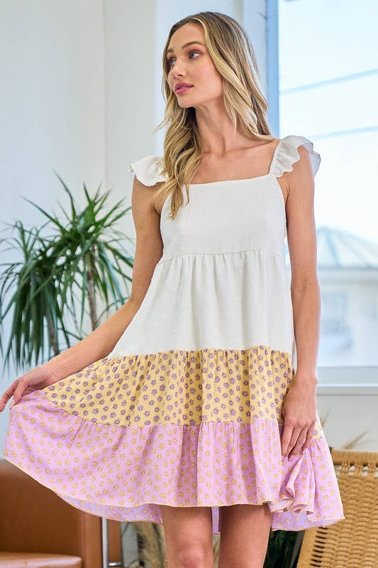 SD1210S SOLID COLOR BLOCK DRESS WITH RUFFLED