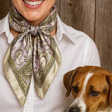 The perfect accessory for your hunt breakfast. This satin scarf is 53cm x 53cm (20.87”) and features the huntsman following the hounds as they chase their quarry across the countryside. Tallyho!