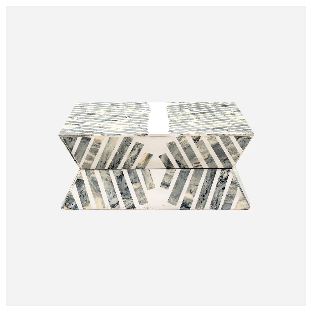 Oval shaped large box with a tropical art deco inspired lift top reminiscent of beloved breeze blocks and rossettes. A collectible, decorative object - perfect for holding small treasures or adding a bold graphic accent to any space. •Width: 3 in / 10 cm •Length: 4.7 in / 12 cm •Height: 2.1 in / 5.5 cm - Acrylic sourced from a combination of new and repurposed acrylic from industry scraps * Due to the recycled and artisanal nature of the craftmanship, each item may vary slightly in texture and color adding a unique character to every piece.