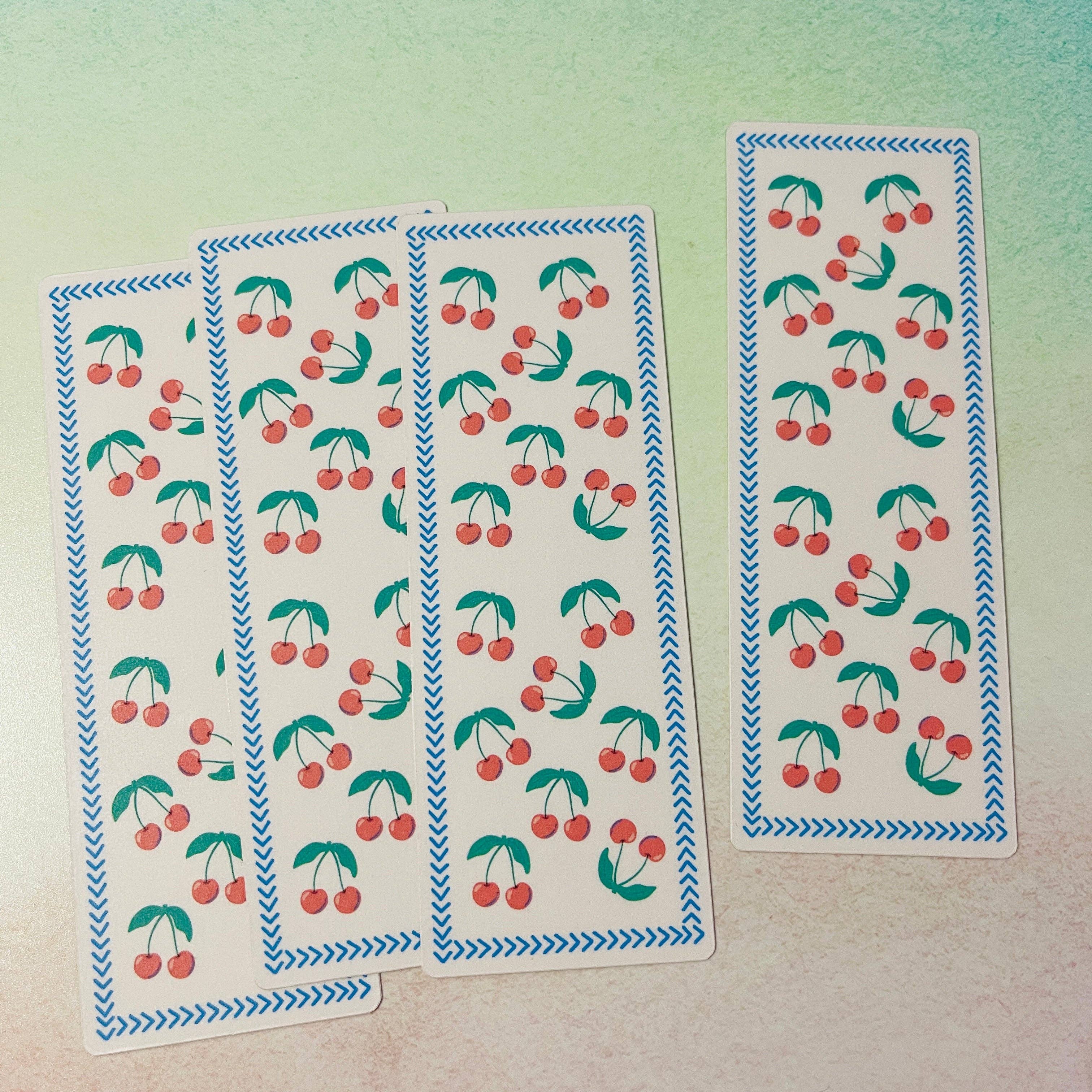 Approximately 6"x2" laminated bookmark with rounded corners and matching tassel. These bookmarks are made with a front and back repeating pattern so each bookmark may be slightly different.