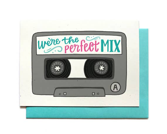 FRONT: You rock my world INSIDE: blank DETAILS: • Dimensions - one 5x7 folded card • Paper - 100# speckled cardstock, 100% recycled • Envelope - blue recycled envelope (A7) • Packaging - sealed in a clear sleeve