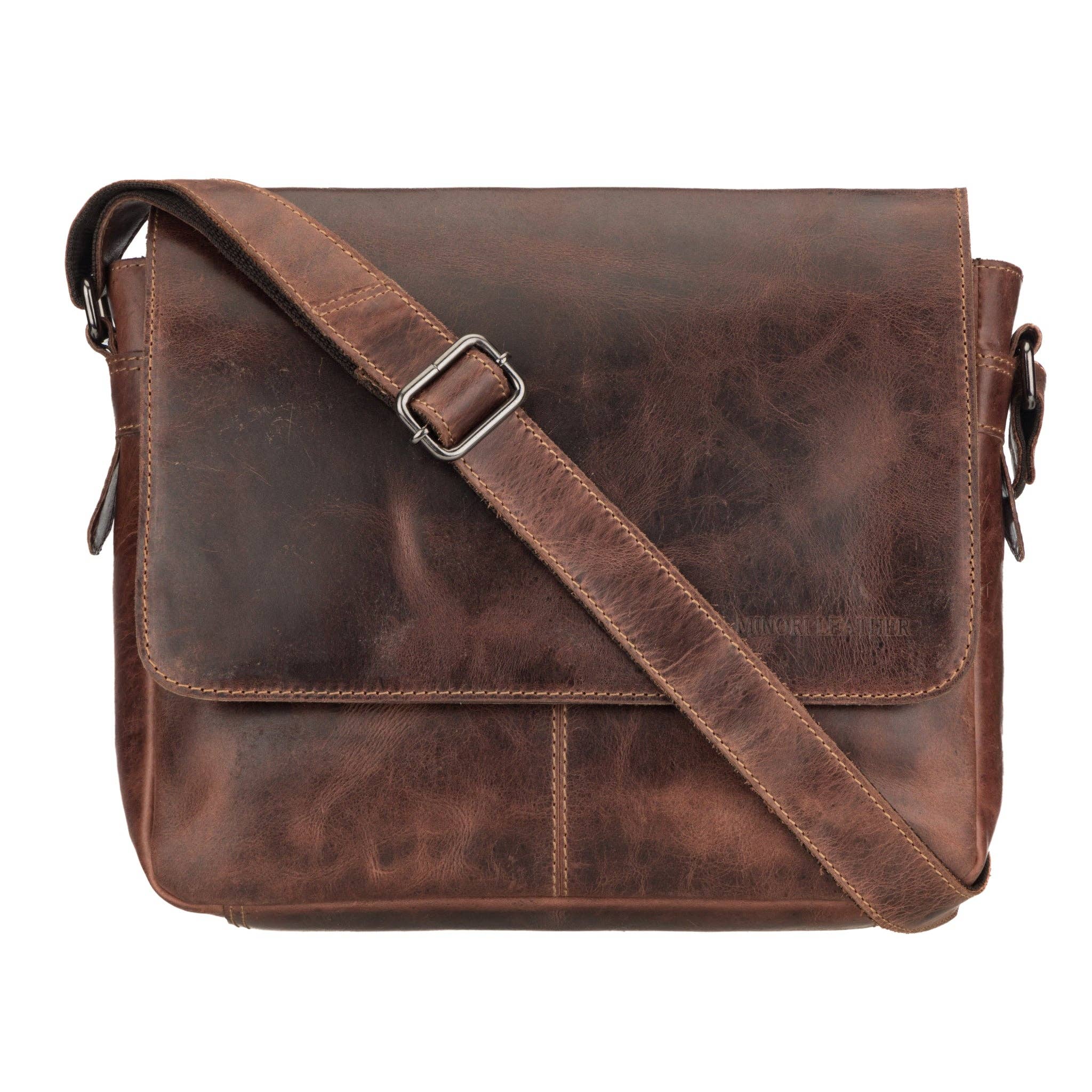 Crafted for Everyday Versatility, Designed for Urban Utility. Meet the Denver Crossbody by Minori Leather—a ruggedly stylish companion built for the hustle of modern life. Designed with the charm of Colorado's mile-high city, this full-grain leather bag delivers smart structure, ample storage, and minimalist appeal. Product Highlights * Material: Handcrafted from premium Full-grain oil pull-up cowhide leather, offering exceptional durability and a naturally rich, vintage finish. * Color: Chestnut with contrast stitching for a timeless, refined look. * Dimensions: 8” L × 11” H × 2.3” D * Weight: 1.3 lbs – lightweight yet sturdy for everyday use. * Strap: Adjustable leather strap with canvas reinforcement; extends up to 65" for versatile crossbody or shoulder carry. * Hardware: Smooth and durable YKK zippers ensure easy, long-lasting use. * Design: Compact yet highly functional — ideal for workdays, travel, or casual outings. Smart Organization * Main Compartment (8" × 11") – Spacious zippered section fits a small tablet, Kindle, phone, wallet, sunglasses, charger, and other daily essentials. * Interior Pockets – Includes a secure 7" × 7.5" zippered pocket for valuables and a 5" × 5" slip pocket for quick-access items like cards or earbuds. * Front Section – Features a 6.5" × 8" zippered pocket plus an additional 6" × 7" zippered pocket hidden under a magnetic flap, keeping accessories safe yet accessible. * Back Pocket (6.5" × 8") – Zippered, discreet storage for documents, cash, or travel items. * Carrying Comfort: Reinforced strap design balances strength with comfort for all-day wear. Why You'll Love It * ✔ Compact yet spacious layout * ✔ Classic styling with everyday practicality