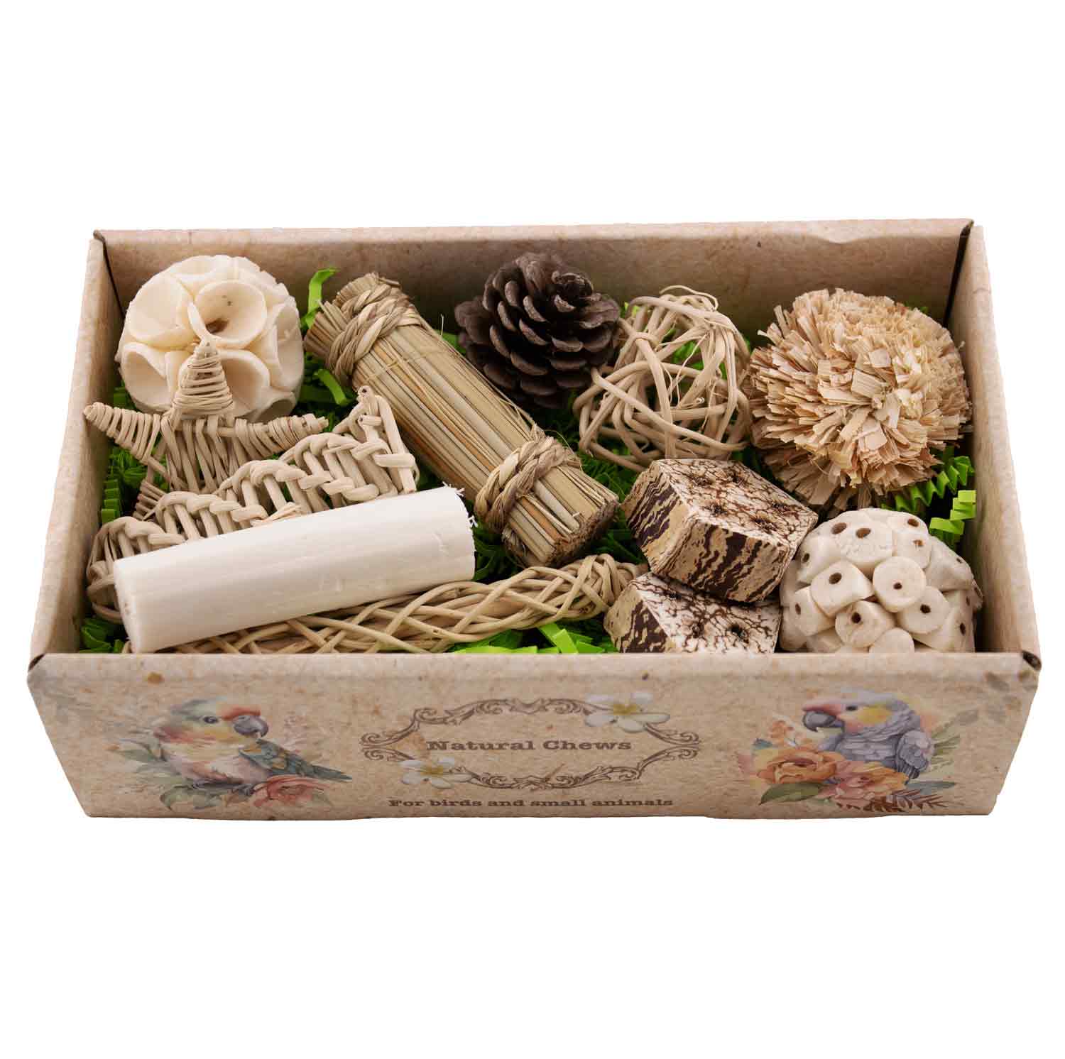 One of the only chewable toys available that are an appropriate size for HUGE macaws, Moluccan cockatoos and the like. Often unavailable so I purchase whenever I can find it.