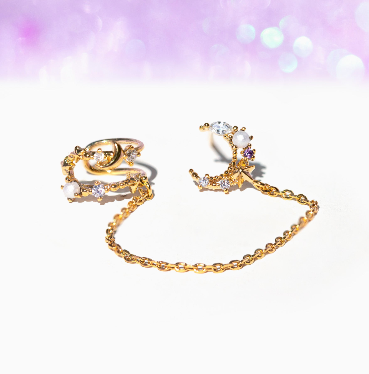 Gold Filled Celestial Moon and Star Cuff/Wrap Earrings