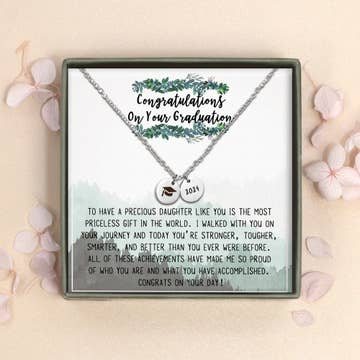 SKU: GRAD5-SILVER Made in United States Color: Silver and Yellow Gold Is Set: Individual Occasion: Everyday and Graduation Style: Classic and Minimalist Theme: Family & Friendship Product Language: English Dimensions: 45.7 cm (18 in) Packaging: Recyclable