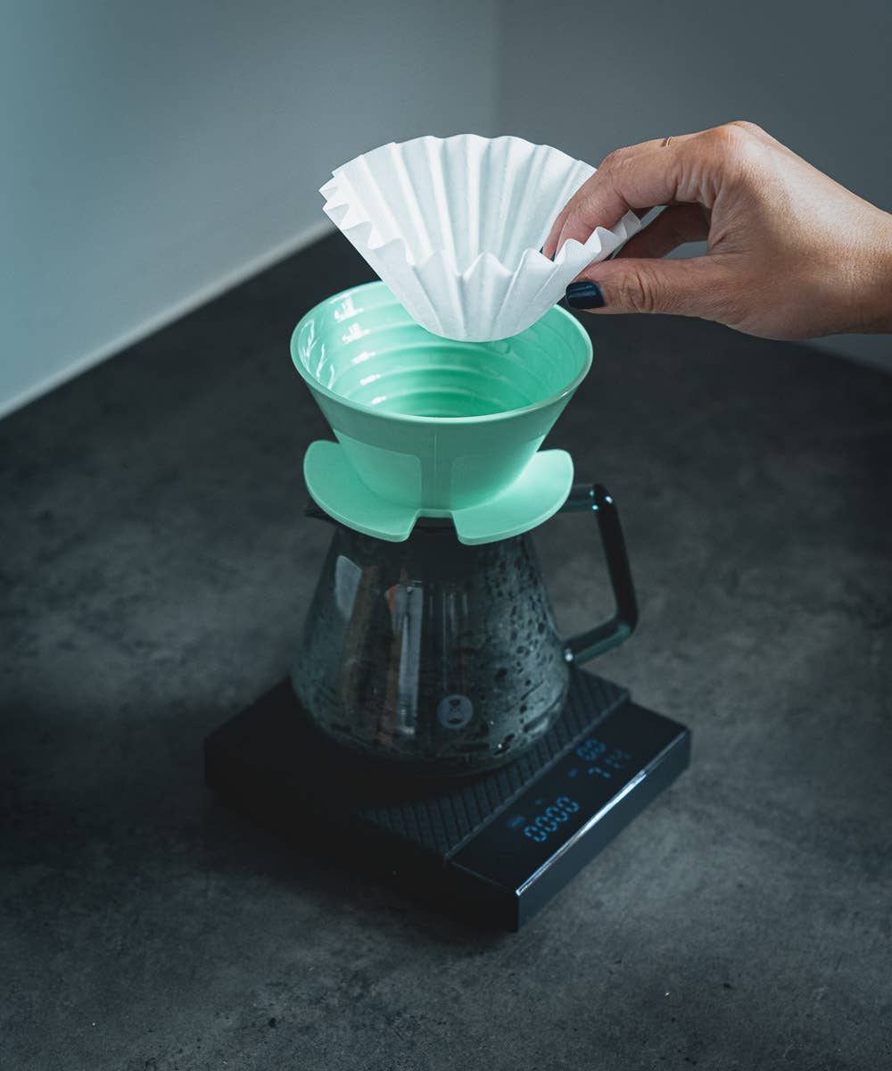 A porcelain brewer with 400 years of history Made of minoware clay, the Origami Dripper carries 400 years of history of minoware production of the Gifu region, famous for its washi paper and pottery. Minoware is a ceramic-making technique some 400-500 years old and only a few dozen artisans left in Japan still know the craft. By purchasing a Origami Dripper, you are bringing this rich tradition into your coffee brewing routine. Excellent Brewer compatible with both wave and conical style filters Made with high density clay, the Origami has excellent heat retaining properties. When used with the conical filter, the 20 folds encourages faster brew time by enabling faster airflow.