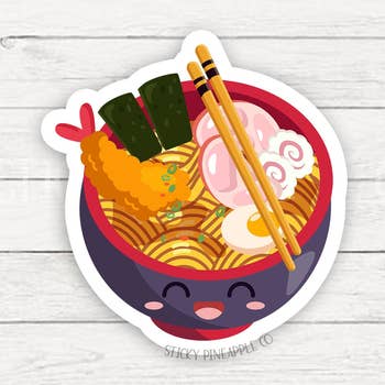 Cute original character design. Perfect for a foodie. Use this stationery sticker for your laptop, water bottle, planner, or anywhere your heart desires! ******** Measures approximately 3 inches Printed on thick vinyl sticker Durable Indoor/Outdoor, UV stable, and Water proof ******** Note to customers Colors may differ slightly due to the photograph and/or monitor settings