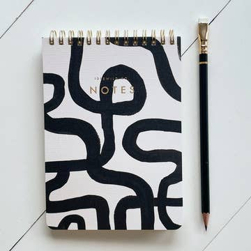 Letterpressed black stars twinkle on this bold spiral-bound notebook. Choose from a variety of page formats for the inside: * Blank: white perforated pages (55 pages) * Graph / lined: white perforated pages with grey 0.2" solid graph on left / grey 0.2" lines on right (55 pages) * Lined / graph: white perforated pages with grey 0.2" lines on left / grey 0.2" solid graph on right (55 pages) * Dotted grid: white perforated pages with grey 0.25" dotted grid (55 pages) Materials: doubled heavy paper for front and back covers; your choice for inside pages (see list above); wire-O spiral binding Size: page size is 6" x 9", overall notebook including spiral is 6.25" x 9" x 0.5" thick Printing method: letterpress